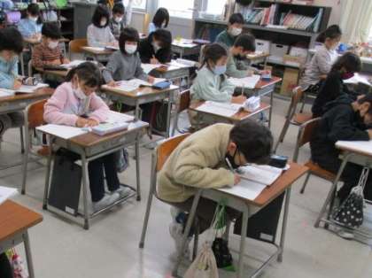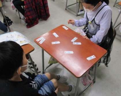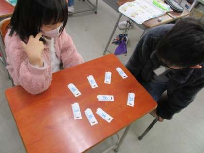 ノートに丁寧に式を書いたり、かけ算カードを使って楽しく学習したりしています。九九が進み、繰り返し練習しています。
