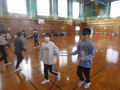 総合的な学習の時間の「アイムポッシブル」の学習で、伴走者(ガイドランナー)に挑戦しました。
