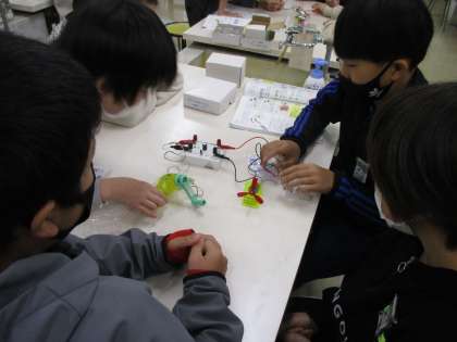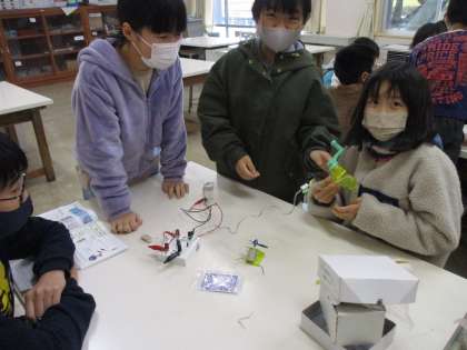 理科の学習では、電気と私たちの暮らしとの関わりについて学んでいます。手回し発電機で発電させた電気を光や音、運動に変えることができることが分かりました。世の中にあふれる電気の仕組みについて学んでいきます。