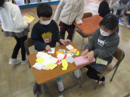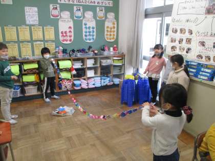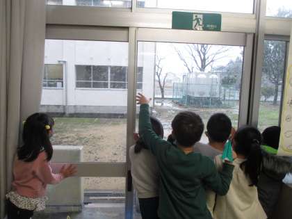 クリスマス集会に向けて、それぞれの係が準備を進めています。お昼頃に雪が降り始め、子供たちは外の様子に夢中でした。