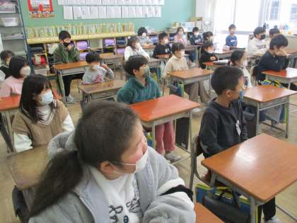 2学期の終業式を行いました。終業式はリモートで行い、校長先生の話や「かがやき発表」を真剣に聞くことができました。学習や行事等、2学期にがんばったことを振り返りました。3学期の始業式に、元気な姿の子供たちに会えることを楽しみにしています。