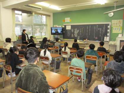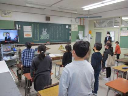 1月10日、3学期の始業式を行いました。子供たちは、各教室でリモートで参加しました。