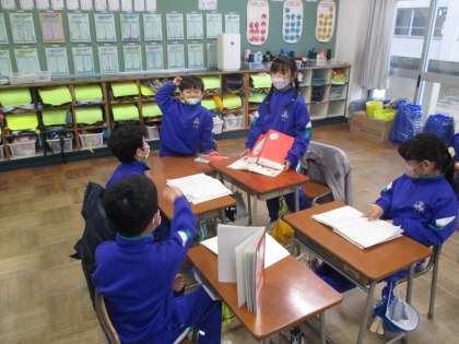 国語科では、自分の好きなお話を紹介しました。聞いている人は、もっと気になることや知りたいことについて積極的に質問することができました。