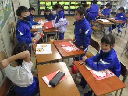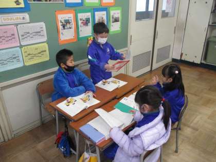 国語科では、自分の好きなお話を紹介しました。聞いている人は、もっと気になることや知りたいことについて積極的に質問することができました。