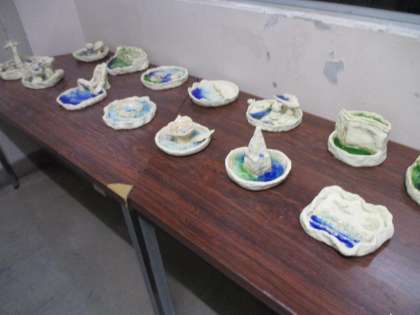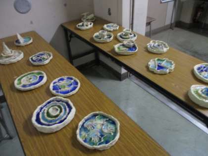 2学期に図画工作科の学習で取り組んだ焼き物を展示しました。