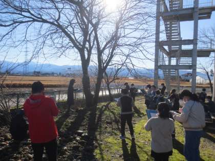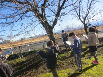 理科では、4月からサクラの木の観察を続けています。すっかり枝だけになったサクラの木を観察することで、季節の移り変わりを感じ取りました。写真は1組の様子です。