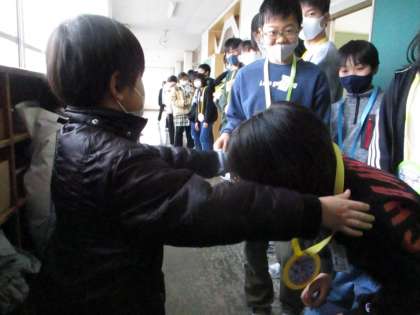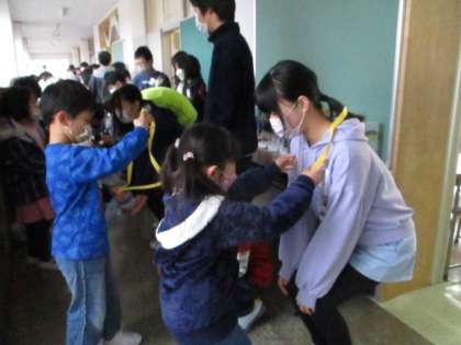 今日は1年生が心を込めてつくった卒業お祝いメダルを、6年生さんにプレゼントしました。とても喜んでもらえました。