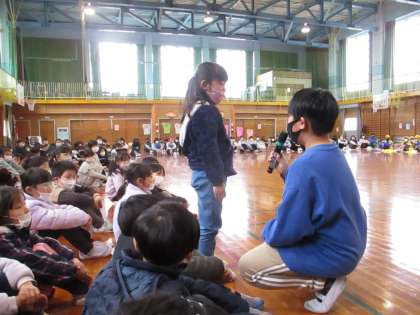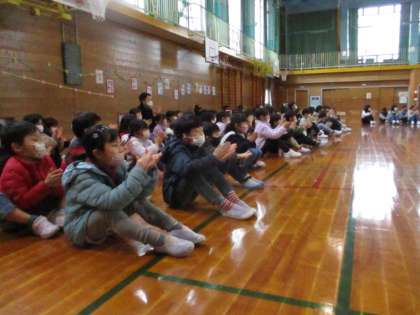 卒業を祝う集会の様子(1年生)