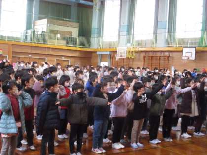 他の学年の出し物を見たり、合唱やエールをしたりして、みんなでお祝いすることができました。