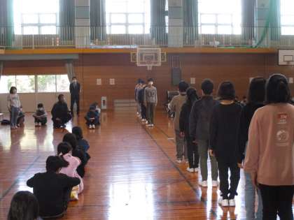 児童会引継ぎ式がありました。各委員会の委員長から5年生に委員会の引継ぎを行いました。