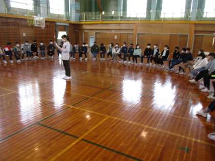 学年全員で「なんでもバスケット」や「伝言ゲーム」をしました。クラス関係なく仲良く過ごし、楽しい時間となりました。