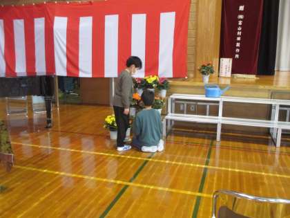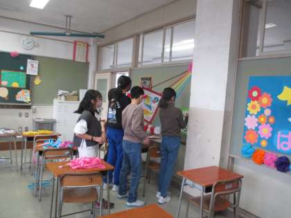 6年生の教室の飾り付けや体育館の式場準備、学校全体の掃除等、5年生で分担して取り組みました。