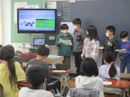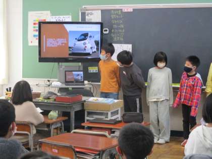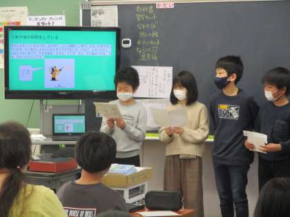 校区探検で見学に行った施設について、スライドにまとめました。見つけたすてきを、みんなに紹介しました。