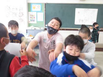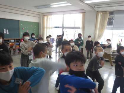 こちらは1組の集会の様子です。ジェスチャーゲームやダンスをして盛り上がりました。