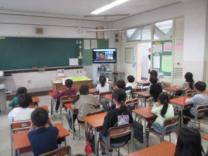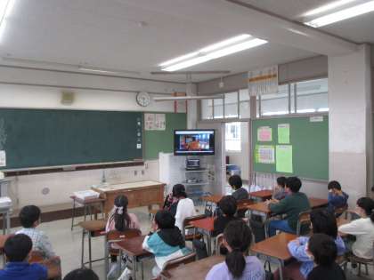 3年生は、オンラインで教室から新1年生の入学をお祝いしました。