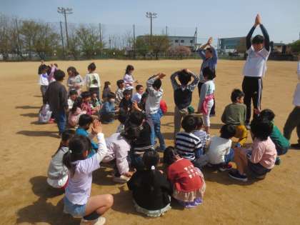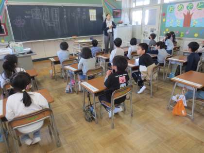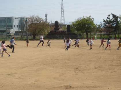 今日から給食が始まり、少しずつ学校生活のルールを学んでいます。話を聴くときは集中しています。天気がよかったので、1年生みんなでグラウンドでこおりおにをしました。元気いっぱいの子供たちでした。