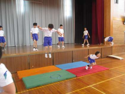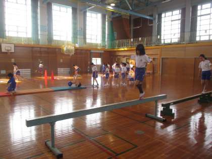 平均台やマット等を使ったそれぞれのコースを、友達と声をかけ合いながら取り組むことができました。
