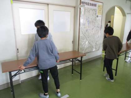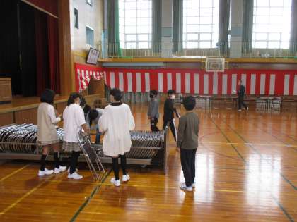 入学式の準備等、学校のために働いています(6年生)