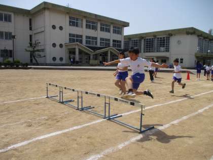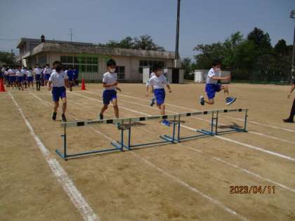 50メートル走やハードル走の練習をしています。5月に行われる運動会に向けて頑張っています。