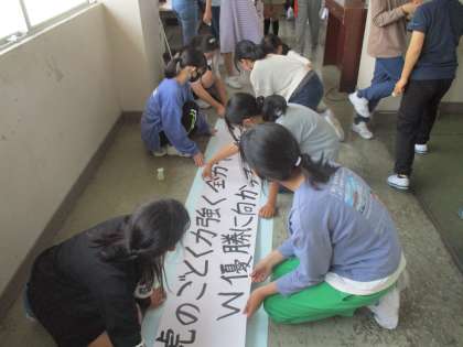 各団のスローガンが決まり、大きな模造紙に書きました。どれも気合いの入ったスローガンです。結団式のリハーサルもしました。明日はいよいよ結団式です。