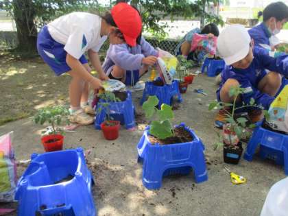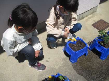 「上手にできるかな...」と不安げな子供たちも、友達と協力しながら一生懸命取り組み、頑張って育てようと意気込んでいる姿が見られました。