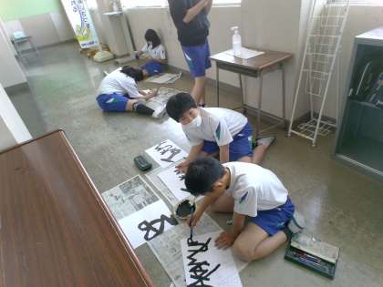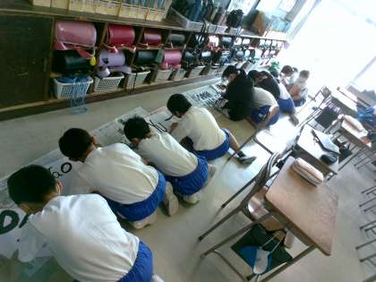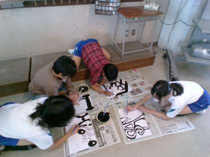 自分の名前をローマ字でアート風に描いています。完成が楽しみです。