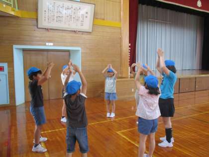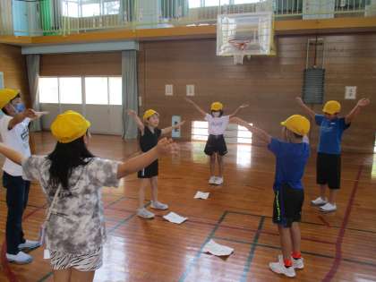 団体競技や応援等、団で力を合わせて練習に取り組んでいます。応援合戦の言葉や振り付けを確認しました。どの団も、気合いが入った力強い声が響いていました。