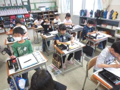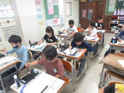 4月の横画に続いて、今日は縦画の練習をしました。1回目は準備も片付けも初めてで、時間がかかりましたが、3回目の今日はずいぶん慣れてきました。来週は「土」の清書を書く予定です。