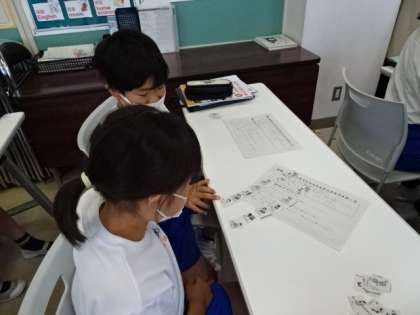 外国語科では、友達の誕生日を話題にしながら、英語での月や日、曜日の表し方を学習しています。今回はカードゲーム方式で、友達同士楽しみながら学習に取り組みました。