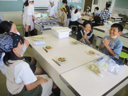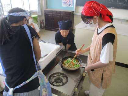 彩り野菜の炒め物をつくりました。材料の切り方や厚さ等、様々なことを意識しながら調理することができました。