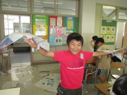 くるくる丸めてグループのみんなでテントをつくったり、つなげて素敵なファッションを身にまとったりしました。