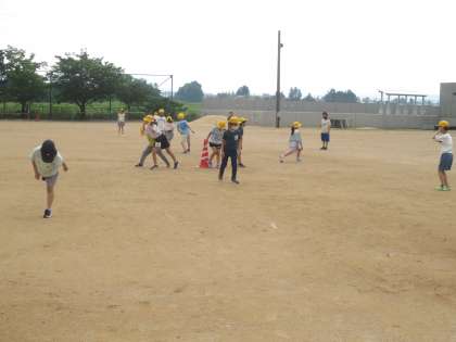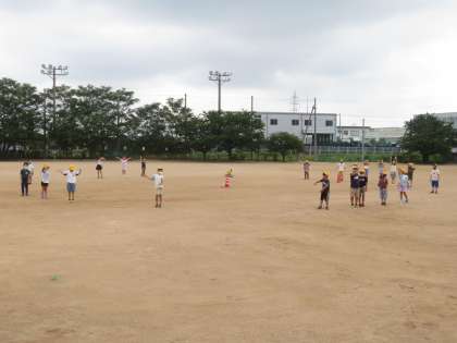 算数科「長い長さ」の学習で、赤いコーンから10メートル先の場所を予測して立つ活動を行いました。その後、巻き尺を使って正しい10メートル先の場所を確認。「ぴったりだった」「おしかった」という声の後、「きれいな円になった!」この後の学習にも生きていきそうです。