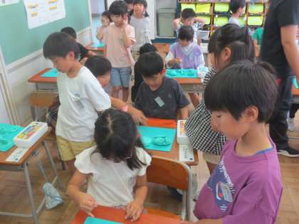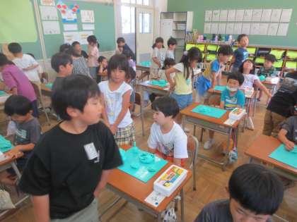 今日の図画工作科は、粘土で「ごちそうパーティをひらこう」という課題で活動しました。1年生2クラスで時間を合わせて行い、みんなで鑑賞し合いました。『ホットドッグやハンバーガー、ケーキにドーナツ、餃子やラーメン』等、子供たちの好きなものでいっぱいになりました。