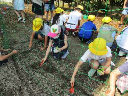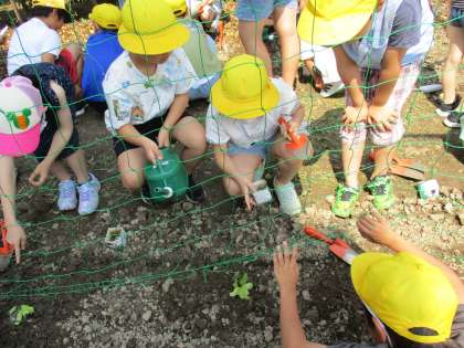 ヘチマの苗を畑に植え替えました。これからの生長が楽しみです。