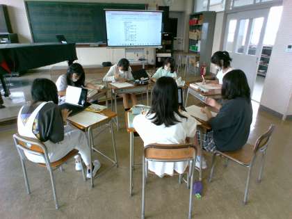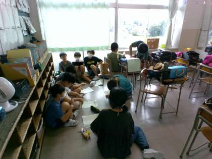 総合の学習では、創校150周年を記念した様々な活動を企画しています。話合いの様子です。