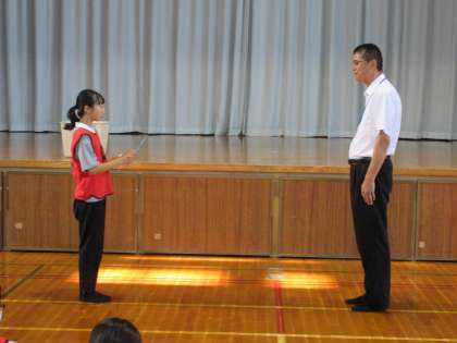 出発式では、代表児童が堂々と目当てや思いを校長先生に伝えました。