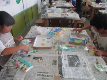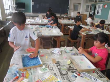 「とろとろえのぐ」をつかって、指や手で絵を描きました。とろとろの絵の具の触感を楽しみながら、作品をつくることができました。