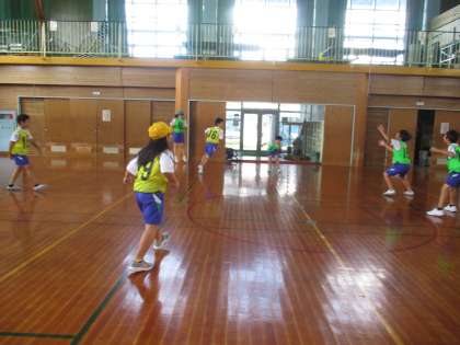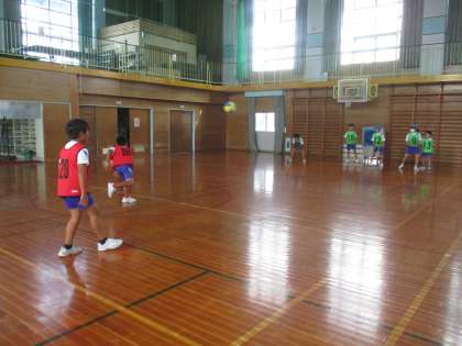 係が企画したドッジボール大会をみんなで楽しみました。元気いっぱい体を動かしている子供たちです。