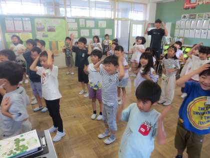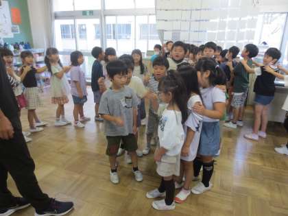 今日の音楽科の学習は、1組・2組合同で行いました。いつもより大人数でじゃんけん列車をしたり、リズム遊びをしたり、リズムダンスを踊ったりしました。互いのよさを感じられる時間になりました。