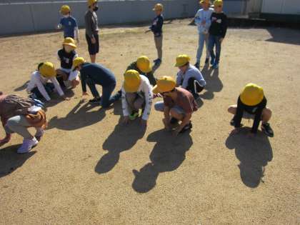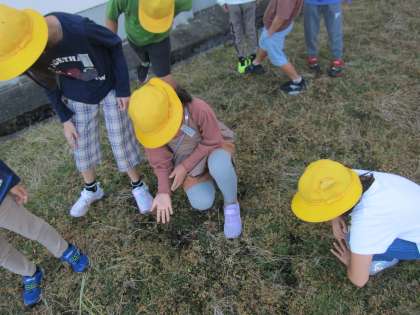 理科で太陽とかげの関係を学習した子供たち。日なたと日かげの気温の感じ方が全然違うことから、今日は外に出て実際に両方の地面を触り確かめました。「日なたの地面はあったかい」「日かげは冷たくてじめじめしている」と、感じていました。今後、温度計を使ってあたたまり方を比べていく予定です。