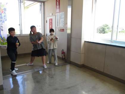 空気を筒の中に閉じ込めて、玉を飛ばして遊びました。遠くまで飛ぶ方法を探したり、友達と競い合ったりして楽しみました。