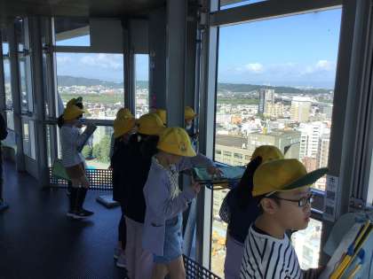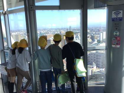 写真は、富山市役所展望塔での様子です。