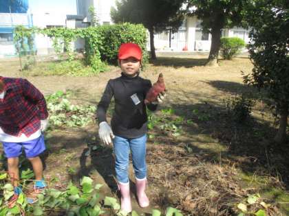 どんないもが出てくるかワクワクしながら掘りました。大きいさつまいも、小さくてかわいいさつまいもも、大切に収穫しました。