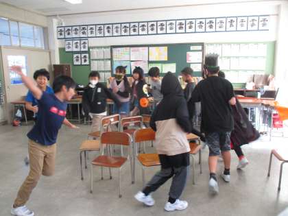 お楽しみ集会を開き、みんなで楽しみました。いす取りゲームやなんでもバスケットをしたり、仮装したりしました。
