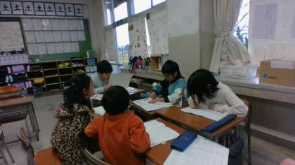 国語科の学習で、「食べ物の秘密教えます!」の学習に取り組みました。大豆以外にも姿を変える材料がないかを調べ、分かったことを文章に表し、グループで読み合いました。