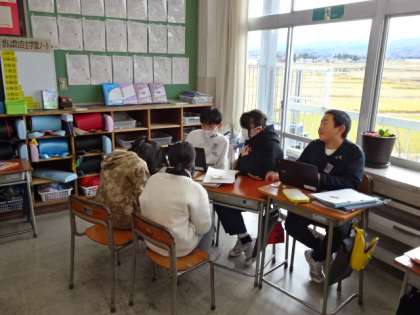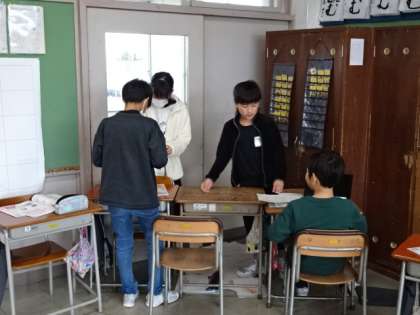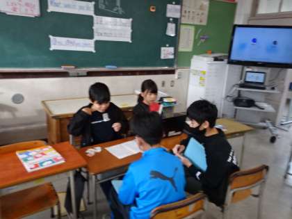 外国語科では、短い話を聞いてその内容を理解し、お互いのことを伝え合う学習を進めています。
