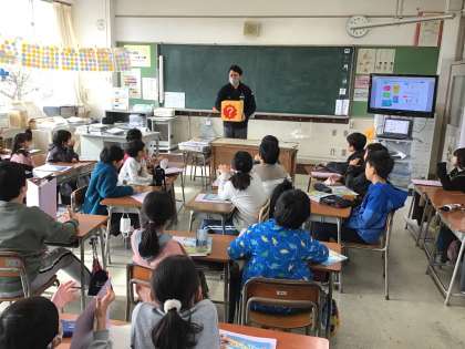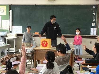 3年生の子供たちは、外国語活動の時間が大好きです。今日は、「はてなボックス」の中身を当てるゲームに英語で挑戦しました。
