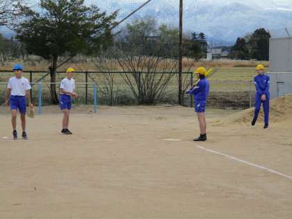 体育科では、ベースボール型のゲームを行っています。守備の際の立ち位置や攻撃の打順を工夫しています。