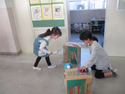 これまで、学級、学年で遊び合いながら改良を重ねてきました。「1年生に喜んでもらいたい」という気持ちをもって、優しい言葉かけや丁寧な説明をすることができました。