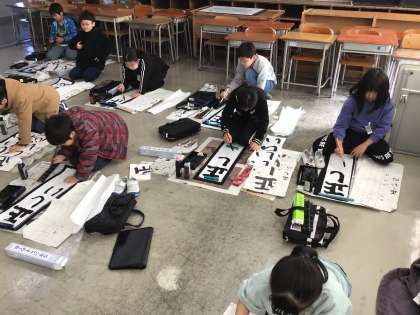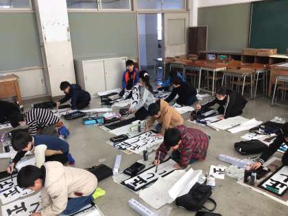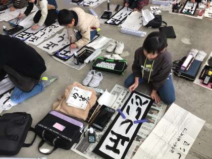 始業式後に行われた書初大会では、練習の成果を発揮しようと集中して書く子供たちの姿が見られました。